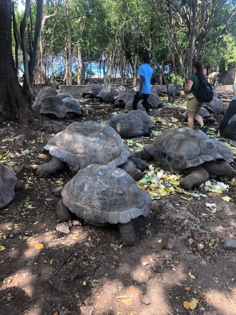 Take a boat ride over to Prison Island and visit the Aldabra tortoises that reside in a sanctuary there. You can feed and pet them. Some are over 100 years old. The history of Prison Island is worth the visit. Learn of the history of slave trading in past centuries.